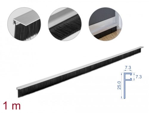 Ez a Delock kefeszalag használható ajtók, ablakok kapuk, henger záró dobozok lezárására. A hajlékony kefeszálak megakadályozzák, hogy a por és homok behatoljon és huzat kialakulását is meggátolja. Könnyen felszerelhető és igény szerint rövidíthető A kefe foglalata rögzíthető csavarral, ragasztó csíkkal vagy kétoldaló ragasztóval. Az alumínium foglalat igény szerint rövidíthető egy fémfűrésszel. Műszaki adatok Hosszúság: kb. 1 m Kefeszál átmérője: 0,2 mm Kefeszál hosszúsága: 40 mm Kefeszál szín: fekete Környezeti hőmérséklet: -20 C ~ 100 C Egyenként rövidíthető Anyaga: alumínium / műanyagból Foglalat dimenzóinak jellemzői (HxSzxM): kb. 25,0 x 7,3 x 7,3 mm A csomag tartalma Kefeszalag Csomag White Box Gyártó: Delock