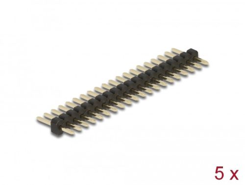 Ezek a Delock tűfejlécek nyomtatott áramköri lapokon használhatók az egyes kártyák közötti kapcsolat létrehozására. Műszaki adatok Tűk száma: 20 Vezetékek középvonala közötti távolság: 1,27 mm Érintkezési ellenállás: 20 m? Szigetelési ellenállás: 1000 M? / min. Ellenállási feszültség: 500 V AC / DC Működési hőmérséklet: -40 C ~ 105 C Működési hőmérséklet: 230 C (30 - 60 másodperc) Arany bevonatú érintkezők A tűfejléc anyaga: anyaga UL 94V-0 Szín: fekete Méretek (HxSzxM): kb. 25,4 x 6,3 x 2,0 mm A csomag tartalma 5 x tűfejléc Csomag Zárható műanyag tasak Gyártó: Delock