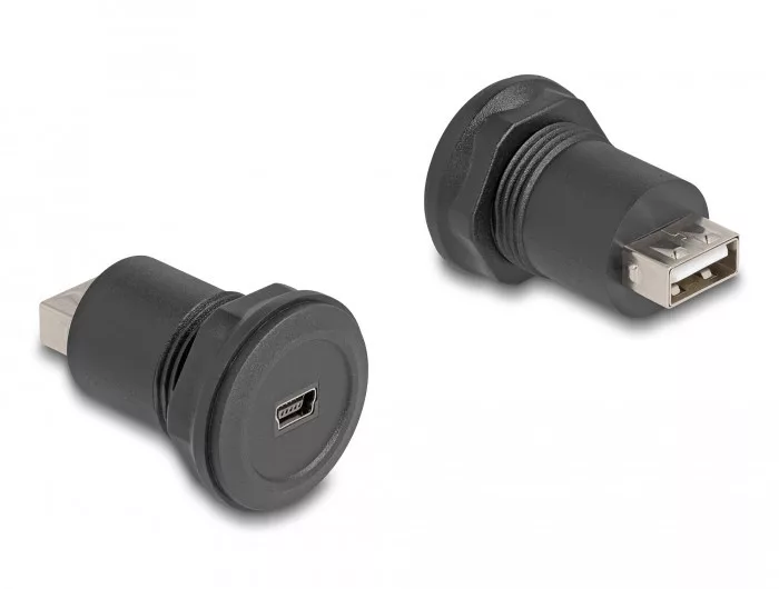 Ez a Delock USB beépített csatlakozó használható kapcsolószekrényben vagy elosztó házban, hogy két USB plugot kössön össze. Műszaki adatok Csatlakozó: 1 x USB 2.0 Mini-B típusú hüvely 1 x USB 2.0 A-típusú hüvely Beépített nyílás átmérője: 21,7 mm Burkolat anyaga: műanyagból Szín: fekete Méretek (H x M): kb. 41 x 28 mm A csomag tartalma Beépített csatlakozó Csomag Zárható műanyag tasak Gyártó: Delock