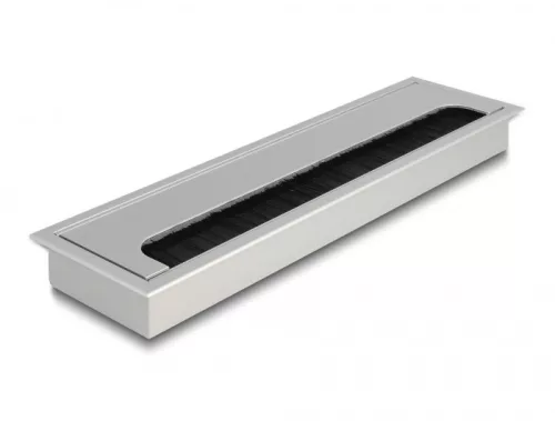 Delock Kábel tömítő/rendező asztalba szerelt változathoz kefével 280 x 80 x 28 mm méretű, ezüst (66862)
