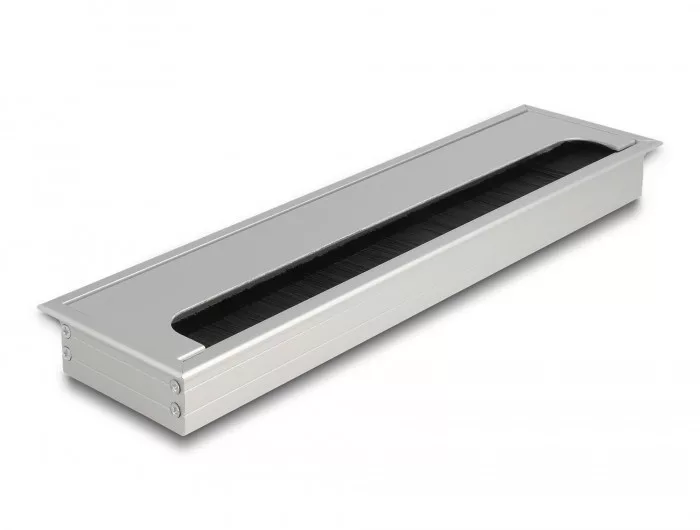 Delock Kábel tömítő/rendező asztalba szerelt változathoz kefével 300 x 80 x 28 mm méretű, ezüst (66863)