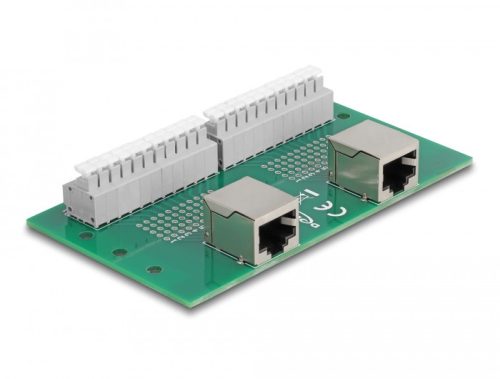 Ez a Delock adapter használható különböző kontroll és mérő eszközök összekapcsolására. Eszköz nélkül csatlakoztathatók a terminal blockhoz szabadvégű sodratok. DIN sín rögzítés A csomagban lévő klipszek segítségével az adapter csatlakoztatható egy 15 mm vagy 35 mm széles DIN sínhez. Műszaki adatok Csatlakozó: 2 x RJ50 hüvely 2 x 11 tűs csatlakozóblokk Pólus kiosztás: 1:1 Vezetékek középvonala közötti távolság: 3,81 mm 24 12 AWG vezetékméretű kábelekhez használható DIN sín rögzítés: 15 mm és 35 mm Működési hőmérséklet: -40 C ~ 100 C Méretek (HxSzxM): kb. 91 x 60 x 18 mm Rendszerkövetelmények Két szabad RJ50 apa 15 mm vagy 35 mm DIN-sínhez A csomag tartalma Adapter 2 x DIN sínkapocs 5 x Csavarok Csomag Doboz Gyártó: Delock