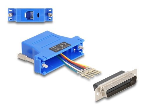 Ez a Delock adapter kibővít egy soros D-Sub 25 interfészt egy ISDN-n, telefonon vagy RJ12 kábelen keresztül. A D-Sub 25 interfész egyenként és flexibilisen is alkalmazható. Az adapter kontaktjai a kívánt elvárások szerint rögzíthetők a D-Sub 25 házába. Egy könnyed becsattintással, a foglalat a helyére pattan és megbízható kapcsolatot nyújt. Műszaki adatok Csatlakozó: 1 x soros D-Sub 25 tűs csatlakozódugó 1 x RJ12 hüvely> RJ12 csatoló felület 6 tű számára, soros csatoló felület egyéni összeállíthatósággal Soros csatlakozó csavarral Szín: kék Méretek (HxSzxM): kb. 55 x 40 x 16 mm A csomag tartalma Adapter Csomag Zárható műanyag tasak Gyártó: Delock