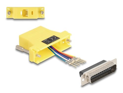 Ez a Delock adapter kibővít egy soros D-Sub 25 interfészt egy ISDN-n, telefonon vagy RJ12 kábelen keresztül. A D-Sub 25 interfész egyenként és flexibilisen is alkalmazható. Az adapter kontaktjai a kívánt elvárások szerint rögzíthetők a D-Sub 25 házába. Egy könnyed becsattintással, a foglalat a helyére pattan és megbízható kapcsolatot nyújt. Műszaki adatok Csatlakozó: 1 x soros D-Sub 25 tűs csatlakozódugó 1 x RJ12 hüvely> RJ12 csatoló felület 6 tű számára, soros csatoló felület egyéni összeállíthatósággal Soros csatlakozó csavarral Szín: sárga Méretek (HxSzxM): kb. 55 x 40 x 16 mm A csomag tartalma Adapter Csomag Zárható műanyag tasak Gyártó: Delock
