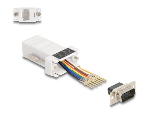 Ez a Delock adapter használható egy soros felület kibővítésére egy opcionális Cat.5 / 5e / 6 kábel használatával. Így bárki egyénileg állíthatja össze a tűösszetételt. Csupán kapcsolja össze a kábel végett a konnektor kívánt bemenetébe és zárja rá a keretbe. Műszaki adatok Csatlakozó: 1 x soros D-Sub 9 tűs csatlakozódugó 1 x RJ45 hüvely RJ45 csatoló felület 8 tű számára, soros csatoló felület egyéni összeállíthatósággal Soros csatlakozó csavarral Szín: fehér Méretek (HxSzxM): kb. 50 x 34 x 16 mm A csomag tartalma Adapter Csomag Zárható műanyag tasak Gyártó: Delock