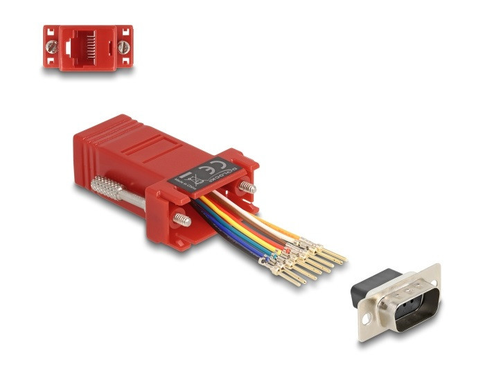 Ez a Delock adapter használható egy soros felület kibővítésére egy opcionális Cat.5 / 5e / 6 kábel használatával. Így bárki egyénileg állíthatja össze a tűösszetételt. Csupán kapcsolja össze a kábel végett a konnektor kívánt bemenetébe és zárja rá a keretbe. Műszaki adatok Csatlakozó: 1 x soros D-Sub 9 tűs csatlakozódugó 1 x RJ45 hüvely RJ45 csatoló felület 8 tű számára, soros csatoló felület egyéni összeállíthatósággal Soros csatlakozó csavarral Szín: piros Méretek (HxSzxM): kb. 50 x 34 x 16 mm A csomag tartalma Adapter Csomag Zárható műanyag tasak Gyártó: Delock