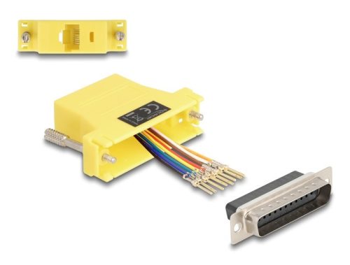 Ez a Delock adapter használható egy soros felület kibővítésére egy opcionális Cat.5 / 5e / 6 kábel használatával. Így bárki egyénileg állíthatja össze a tűösszetételt. Csupán kapcsolja össze a kábel végett a konnektor kívánt bemenetébe és zárja rá a keretbe. Műszaki adatok Csatlakozó: 1 x soros D-Sub 25 tűs csatlakozódugó 1 x RJ45 hüvely RJ45 csatoló felület 8 tű számára, soros csatoló felület egyéni összeállíthatósággal Soros csatlakozó csavarral Szín: sárga Méretek (HxSzxM): kb. 55 x 40 x 16 mm A csomag tartalma Adapter Csomag Zárható műanyag tasak Gyártó: Delock