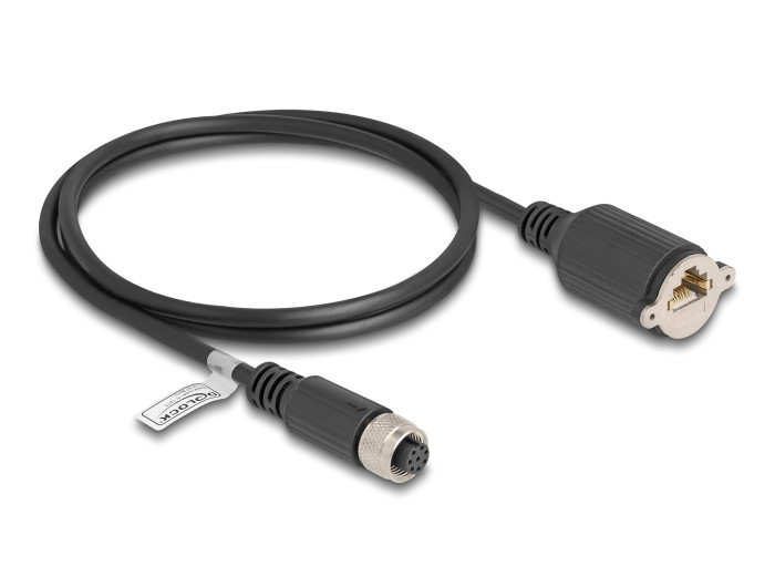 Ez a Delock ipari ethernet kábel használható különböző M12-es csatlakozóval rendelkező elemek például gépvezérlés vagy automatizáció összekapcsolásához. RJ45 panel-rögzítő jack-kel Az RJ45 csatlakozó két csavarral rögzíthető, pl. csatlakozó hátlapi panelhez vagy a házhoz a megfelelő hornyon keresztül. Ezen a módon lehetséges installálni az RJ45 csatlakozót egy egyszerűen elérhető pozícióba. Műszaki adatok Csatlakozó: 1 x M12 hüvely A kódolt 8 tűs 1 x RJ45 hüvely installációhoz Csavarnyílás magassága: kb. 27 mm Cat.5e specifikáció Árnyékolt (FTP) Kábel vastagsága: 26 AWG Kábelátmérő: kb. 6,8 mm Kábelborítás anyaga: PVC Tűzállósági osztály: 94V-0 Működési hőmérséklet: -40 C ~ 85 C Védelmi besorolás: IP67 Szín: fekete Hosszúság a csatlakozóval együtt: kb. 1 m A csomag tartalma M12-kábel Csomag Zárható műanyag tasak Gyártó: Delock