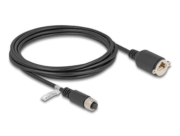 Delock M12 kábel A-kódú 8 tűs anya - RJ45 anya Cat.5e FTP installálásához 3 m, fekete (80438)