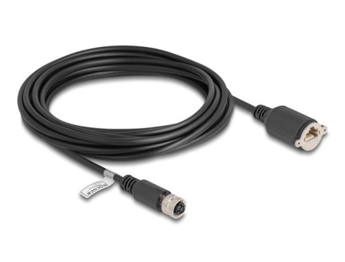 Delock M12 kábel D-kódú 4 tűs anya - RJ45 anya Cat.5e FTP installálásához 5 m, fekete (80455)