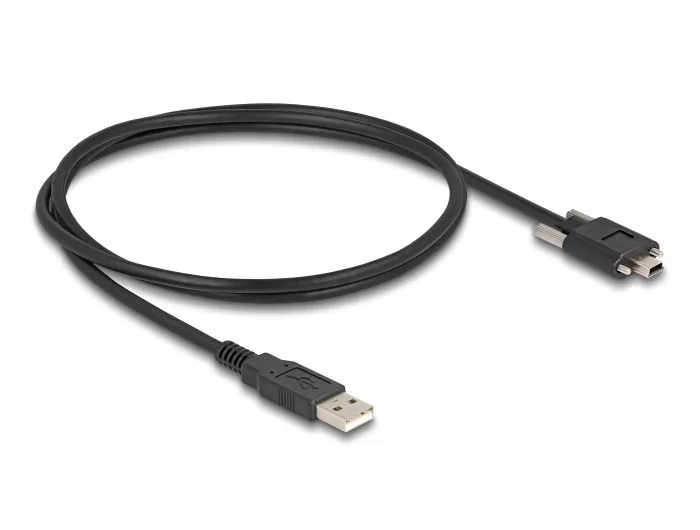 Ez a Delock kábel használható különböző eszközök, mint például digitális kamerák csatlakoztatására. Az USB Mini-B csatlakozó csavarjai biztosítják a csatlakozást, és megakadályozzák a kábelek véletlenszerű kihúzódását. Műszaki adatok Csatlakozó: 1 x USB 2.0 A-típusú dugó 1 x USB 2.0 Mini-B típusú dugó csavarokkal ellátott Csavar típusa: M2 Csavartávolság: kb. 13 mm Kábel vastagsága: 28 AWG adatvezeték 26 AWG tápvezeték Akár 480 Mbps sebességű adatátvitel Kábelátmérő: kb. 4,5 mm Szín: fekete Hosszúság a csatlakozóval együtt: kb. 1 m A csomag tartalma Kábel Csomag Zárható műanyag tasak Gyártó: Delock