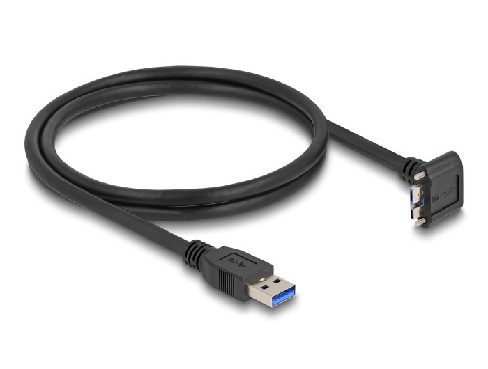 Delock USB 5 Gbps kábel A-típusú USB apa egyenes Micro-B USB apa csavarral 90 -ban felfelé hajlított 1 m fekete (80483)