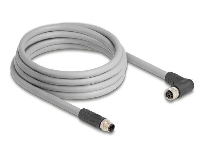 Delock M12 kábel L-kódolt 5 tűs egyenes apa jobbra hajlított anya PUR húzóláncokhoz alkalmas 3 m szürke (80544)