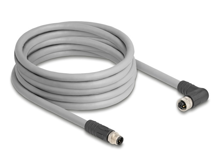 Delock M12 kábel L-kódolt 5 tűs egyenes apa jobbra hajlított anya PUR húzóláncokhoz alkalmas 5 m szürke (80545)