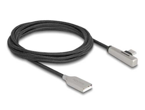 Delock Kábel USB 2.0 A-típusú apa - USB Type-C apa hajlított, LED fénnyel és gyors töltő funkcióval 60 W 2 m (80767)