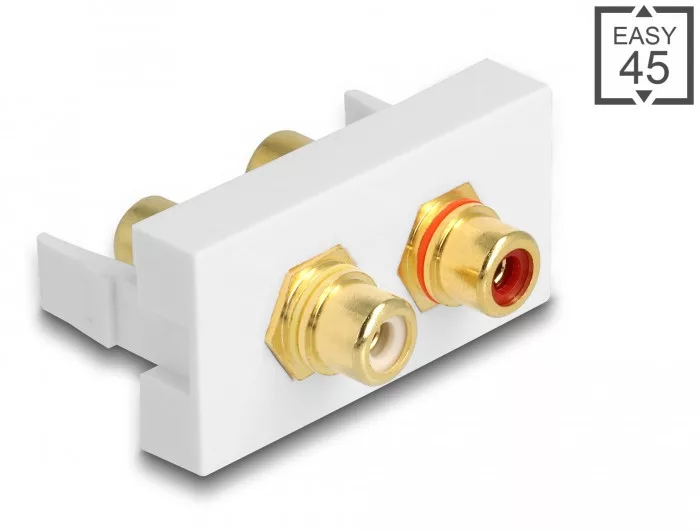 Ezt a Delock Easy 45 modult úgy tervezték, hogy két RCA anya csatlakozót biztosítson. Az egyszerű rácsattintható mechanizmus biztosítja, hogy a lemez biztosan a helyén legyen és könnyen, eszköz nélkül változtatható igény szerint. Easy 45 kapcsolatok A Easy 45 egy változtatható moduláris rendszer mely lehetővé teszi az összetevők űgy mint csatlakoztatók, HDMI vagy USB kapcsolatok igény szerinti hozzáadását. A Easy 45 modulok standardizáltak és beépíthetők különböző modultartókba vagy kábelcsatornákba. A Easy 45 kapcsolódási felületet biztosít elektromos, hálózati és rendszer beépítések, valamint számos perifériás eszköz, úgy mint TV, monitor, nyomtató, laptop stb. között. Gyártó: Delock Szélesség cm: 8 Hosszúság cm: 13 Magasság cm: 2,3