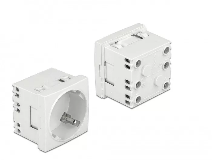 Delock 45 x 45 mm méretű, bővíthető, 45 elrendezésű Easy 45 földelt hálózati csatlakozóaljzat (81425)