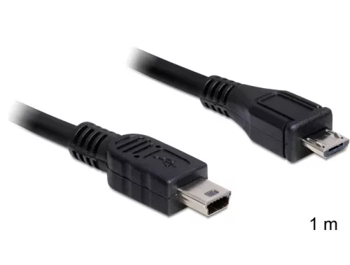 Delock USB 2.0 mikro B dugó USB 2.0 mini dugóra, USB kábel 1 mAdatátviteli sebesség: max. 480 Mb/sA Delock USB kábelt különböző mikroUSB- vagy mini USB csatlakozóval rendelkező készülékek csatlakoztatására lehet alkalmazni. Műszaki adatok: A típusú csatlakozók száma: 1 x · AWG: 28/24 · B típusú csatlakozók száma: 1 x · Belső vezető anyaga: Ónozott vörösréz · Csatlakozó típus: USB · Csatlakozó típus A (illetve bemenetek): USB 2.0 dugó, mikro B típus · Csatlakozó típus B (illetve kimenetek): USB 2.0 dugó, mini B típus · Dugó kivitel: Egyenes · Kábel kivitel: Csatlakozókábel · Kábelhossz: 1 m · Max. töltőáram: 2.5 W @ 5 V / 0.5 A · Max. átviteli sebesség: 480 Mbit/s · Szín: Fekete · Vezeték alkalmazás: USB 2.0 · Vezeték jellemzők: Aranyozatt érintkező,UL minősített · Videóátvitel lehetséges: Nem · Árnyékolás: fólia árnyékolásSzállítás tartalma: Delock USB 2.0 kábel mikro B dugó USB 2.0 mini dugóra, 1 m