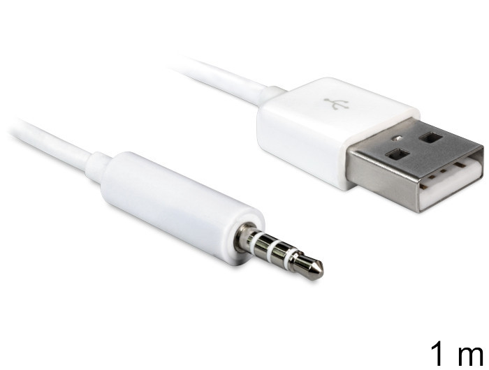 A Delock USB-A apa - sztereo jack 3.5 mm apa 4 pin kábel egy speciálisan tervezett átalakító kábel, amely az iPod Shuffle készülékek csatlakoztatásához használható. Ez a kábel lehetővé teszi az iPod Shuffle zenelejátszó egyszerű töltését és zeneátvitelét egy számítógép USB portján keresztül.