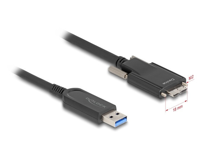 Delock Aktív optikai kábel USB 10 Gbps-A apa > USB 10 Gbps Micro-B Típusú dugó csavarokkal ellátott 10 m