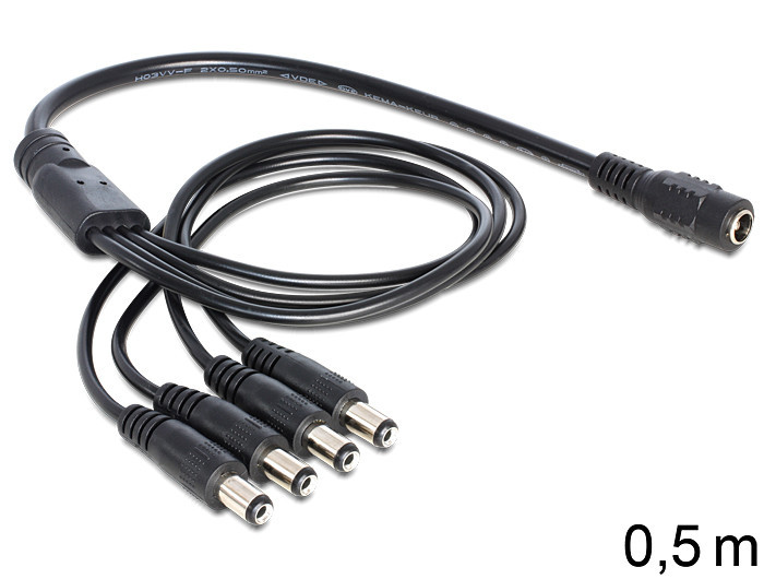Ez a Delock DC elosztókábel négy alacsony feszültségigényű, DC csatlakozóval ellátott eszköz (pl. kamera, vagy LED világítósor) tápforráshoz való csatlakoztatására alkalmas. Specifikáció o Csatlakozó: 1 x DC 5.5 x 2.1 mm anya 4 x DC 5.5 x 2.1 mm apa o Maximális tápbemenet: 5 A o Maximális feszültség a kimeneten: 24 V o Kábelméret a bemeneten (DC anya): AWG 20 o Kábelméret a kimeneten (DC apa): AWG 24 o nikkelezett csatlakozók o Kábel hossza a csatlakozóval együtt: kb. 50 cm Rendszerkövetelmények o Tápforrás DC 5.5 x 2.1 mm apával A csomag tartalma o DC elosztókábel Csomagolás o Műanyag tasak Gyártó: Delock Szélesség cm: 15 Hosszúság cm: 20,5 Magasság cm: 1,5