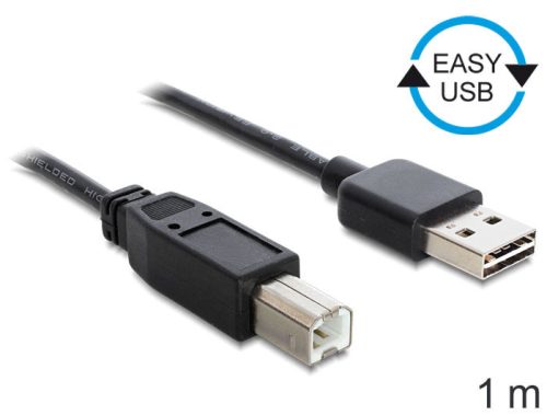 Kétoldalas USB 2.0 A típusú dugóról USB 2.0 B típusú dugóraUSB A dugó, mindkét oldala használhatóÉrintkezők aranyozvaEz az EASY-USB dugóval rendelkező Delock kábel mindkét irányban bedugható az USB A csatlakozóaljba. Így a dugó mindkét oldala használható és ez megkönnyíti a bedugását.Jellemzők: Huzal átmérő: tápvezeték: 24 AWG és adatvezeték: 28 AWG ·Műszaki adatok: A típusú csatlakozók száma: 1 x · AWG: 28 · B típusú csatlakozók száma: 1 x · Belső vezető anyaga: Vörösréz · Csatlakozó típus: USB · Csatlakozó típus A (illetve bemenetek): USB 2.0 dugó, A típus · Csatlakozó típus B (illetve kimenetek): USB 2.0 dugó, B típus · Dugó kivitel: Egyenes · Kábel kivitel: Csatlakozókábel · Kábelhossz: 1 m · Max. töltőáram: 2.5 W @ 5 V / 0.5 A · Max. átviteli sebesség: 480 Mbit/s · Szín: Fekete · Vezeték alkalmazás: USB 2.0 · Vezeték jellemzők: Kétoldalt használható dugó,Aranyozatt érintkező,UL minősített · Videóátvitel lehetséges: Nem · Árnyékolás: Fonat- és fóliaárnyékolásRendszerfeltételek: Számítógép vagy notebook egy szabad USB A típusú csatlakozóval,Készülék USB B típusú csatlakozóval Figyelem: Számítógép vagy notebook egy szabad USB A típusú csatlakozóvalKészülék USB B típusú csatlakozóval