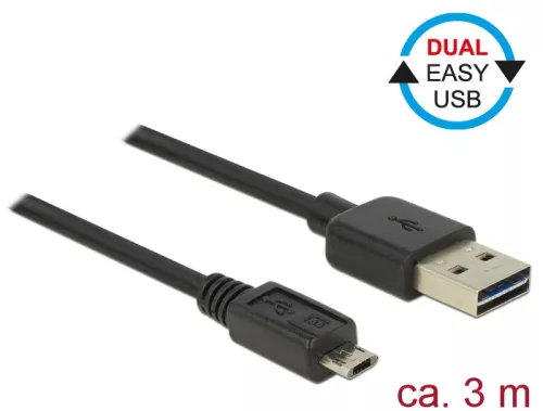 Ez az EASY-USB A-típusú csatlakozódugóval és EASY-USB Micro-B típusú csatlakozódugóval ellátott Delock kábel a megfelelő USB-csatlakozóhüvelybe csatlakoztatható mindkét irányban. Emiatt a csatlakozódugó két irányban használható, ami egyszerűbbé teszi a csatlakoztatást. Műszaki adatok Csatlakozó: 1 x USB 2.0 A-típusú, fordított dugó > 1 x USB 2.0 Micro-B típusú, fordított dugó USB-A-csatlakozódugó és Micro USB-csatlakozódugó, mindkét irányban használhatók Kábel vastagsága: 28 AWG adatvezeték 24 AWG tápvezeték Kábelátmérő: kb. 4,5 mm Aranyozott csatlakozó Szín: fekete Hosszúság (a csatlakozóval együtt): kb. 3 m Rendszerkövetelmények PC vagy notebook számítógép szabad USB A-típusú-csatlakozóval USB 2.0 Micro-B típusú-porttal ellátott készülék A csomag tartalma Kábel Csomag Poly bag Gyártó: Delock Szélesség cm: 15 Hosszúság cm: 21 Magasság cm: 0