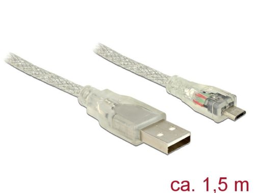 Delock USB 2.0-s kábel A-típusú csatlakozó > USB 2.0 Micro-B csatlakozó 1,5 m áttetsző (83899)
