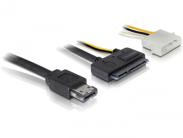 Ennek a Power Over eSATA – SATA (22 tűs) átalakító kábelnek a segítségével összekötheti 2.5" vagy 3.5" SATA merevlemezét (külsőleg) egy szabad Power Over eSATA (eSATAp) porttal. A Power Over eSATA port kombinálja az eSATA és az USB aljzatokat, ezáltal 5V-os feszültséget tud biztosítani a rá csatlakoztatott eszköznek. Így egy 2.5" HDD használatakor nincs szükség külső tápegységre. Azonban használható 3.5" HDD-hez is, ekkor azonban csatlakoztatni kell a Molex csatlakozót az áramforráshoz.