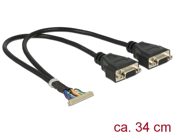 Ezzel a Delock által gyártott csatlakozókábellel akár két VGA-monitor is üzemeltethető a Delock 95255 vagy 95256-os Mini PCIe modulján. Műszaki adatok - Csatlakozók: (40 DP) tűs fejléc > 2 x 15 tűs VGA csatlakozó - Kábelhossz a csatlakozóval együtt: kb. 34 cm Rendszerkövetelmények - cikkszám: 95255 vagy 95256 A csomag tartalma - Csatlakozókábel Gyártó: Delock Szélesség cm: 16,5 Hosszúság cm: 18 Magasság cm: 2,2
