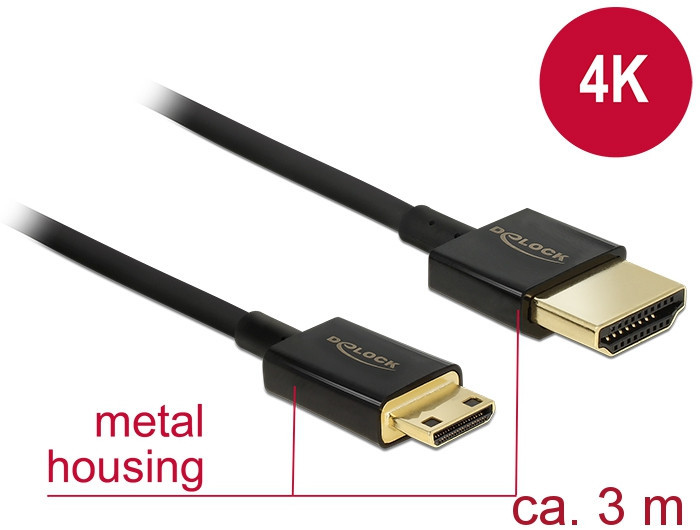 Delock Nagysebességű HDMI-kábel Ethernettel - HDMI-A-csatlakozódugó > HDMI Mini-C-csatlakozódugó, 3D