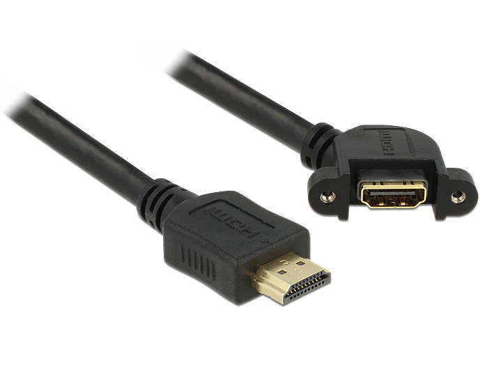 Ez a kábel lehetővé teszi a HDMI-kapcsolat meghosszabbítását, és különféle eszközök csatlakoztatására használható. A belső aljzat két csavarral, pl. a rés konzoljára, kábelcsatornára vagy a megfelelő nyílással ellátott házra. Ez használható a HDMI-csatlakozó könnyen hozzáférhető helyre történő felszereléséhez. Műszaki adatok Csatlakozó: HDMI A 19 tűs hím> HDMI 19-pólusú, 110 -os szögben csavar anyákkal ellátott aljzat a telepítéshez Csavar típusa: # 4-40 UNC Rögzítő lyuk kb. 15 x 6 mm, menetes furatmagasság kb. 30 mm Nagy sebességű HDMI Ethernet (HEC) specifikációval Kábelmérő: 28 AWG Kábelátmérő: kb. 7,3 mm Aranyozott csatlakozó Szín: fekete hossza beleértve csatlakozó: kb. 1 m Rendszerkövetelmények Ingyenes HDMI port A csomag tartalma HDMI panelen rögzíthető kábel 2 csavar csomag Poliás tasak Gyártó: Delock Szélesség cm: 15 Hosszúság cm: 20,5 Magasság cm: 2