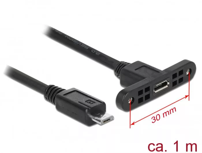 Delock Kábel, USB 2.0-s Micro-B típusú csatlakozóhüvely, panelrögzítés > USB 2.0-s Micro-B típusú cs (85246)