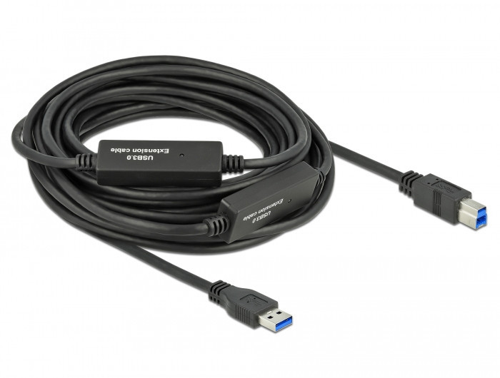 Ez a Delock aktív USB kábel beépített jelerősítővel használható B-típusú USB anya porttal rendelkező eszköz személyi számítógéphez vagy A-tpusú USB porttal rendelkező laptophoz kötéséhez. A megbízható adat- és áramátvitel biztosítására, a mellékelt áramforrás egységet a kábelhez valamelyik jelerősítőn lévő DC csatlakozón keresztül kell összekötni. Műszaki adatok Csatlakozó: 1 x SuperSpeed USB (USB 3.2 Gen 1) A-típusú dugó > 1 x SuperSpeed USB (USB 3.2 Gen 1) B-típusú dugó 1 x DC aljzat Lapkakészlet: Genesys Logic GL3523 Állapotjelző LED Kábel vastagsága: 28 AWG adatvezeték 24 AWG tápvezeték Kábelátmérő: kb. 5,5 mm Akár SuperSpeed USB 5 Gbps sebességű adatátvitel Szín: fekete 2 jelerősítővel (5 m-es távolságban) A jelerősítő méretei (HxSzxM): kb. 6,7 x 2,2 x 1,2 cm Hosszúság a csatlakozóval együtt: kb. 10 m A tápegység műszaki adatai Fali tápegység Bemenet: AC 100 ~ 240 V / 50 ~ 60 Hz / 0,25 A Kimenet: 5 V / 1 A Földelés kívül, pozitív belül Méret: belül: o kb. 1,1 mm kívül: o kb. 3,5 mm hosszúság: kb. 7,0 mm Rendszerkövetelmények PC vagy notebook számítógép szabad USB A-típusú-csatlakozóval A csomag tartalma USB 3.2 Gen 1 kábel Külső tápegység Csomag White Box Gyártó: Delock