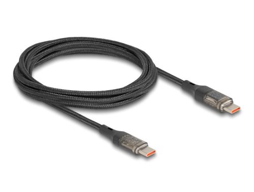 Delock USB 2.0 Adat- és gyorstöltő kábel Type-C apa - apa PD 3.0 100 W átlátszó tápjelzéssel 2 m (85409)