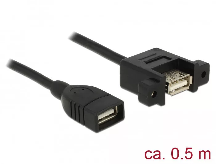 Delock Kábel, USB 2.0-s A típusú csatlakozóhüvely > USB 2.0-s A-típusú csatlakozóhüvely, panelrögzít (85459)