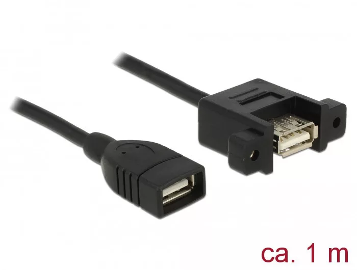 Delock Kábel, USB 2.0-s A típusú csatlakozóhüvely > USB 2.0-s A-típusú csatlakozóhüvely, panelrögzít (85460)