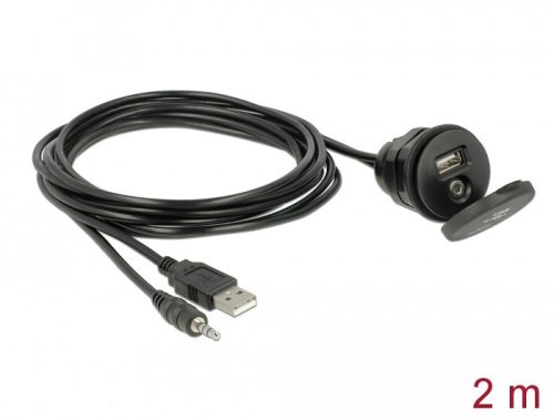 Delock kábel USB Type-A apa+3,5 mm-es 4 tűs sztereó jack apa>anya+zárókupakos USB-bemeneti csatl.ház (85719)
