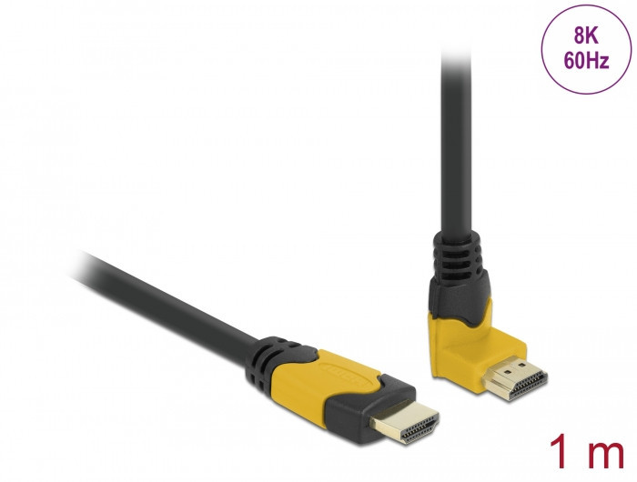 Delock High Speed HDMI kábel egyenes csatlakozódugóval - csatlakozódugóval 90 ívelt felfelé 48 Gbps