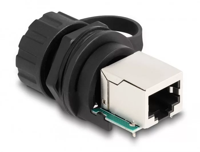 Delock Kábel konnektor RJ50 anya - RJ50 anya beszereléshez IP68 védő kupakkal por és vízhatlan, fekete színű (87954)