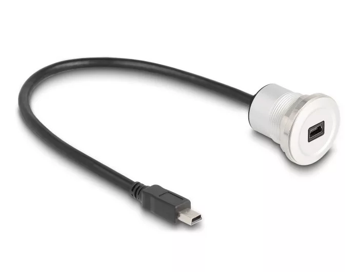 Ez a Delock kábel használható például egy panelbe vagy házba történő illesztéshez, amennyiben megfelelő nyílás elérhető. Továbbá használható különböző USB eszközök kibővítésére és összekapcsolására. Műszaki adatok Csatlakozó: 1 x USB 2.0 Mini-B típusú dugó 1 x USB 2.0 Mini-B típusú hüvely anya installációhoz Menet típus: M22 Beépített nyílás átmérője: 23,7 mm Akár 480 Mbps sebességű adatátvitel Kábel vastagsága: 28 AWG adatvezeték 24 AWG tápvezeték Kábelátmérő: kb. 4,5 mm Szín: fekete / ezüst Hosszúság a csatlakozóval együtt: kb. 30 cm A csomag tartalma USB kábel Csomag Zárható műanyag tasak Gyártó: Delock
