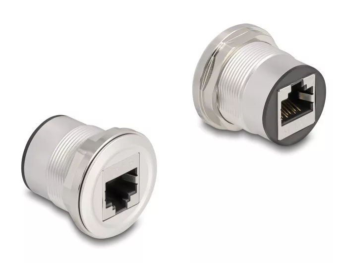 Ez a Delock RJ45 toldó használható egy kapcsoló szekrényben vagy elosztó dobozban, hogy összekösse vagy meghosszabbítsa két RJ45 csatlakozót együtt. Műszaki adatok Csatlakozó: 1 x RJ45 hüvely 1 x RJ45 hüvely Menet típus: M25 Beépített nyílás átmérője: 26,7 mm Cat.6 specifikáció Burkolat anyaga: alumínium Szín: ezüst / fekete Méretek (H x Sz): kb. 30 x 27 mm A csomag tartalma RJ45 beépített anya Csomag Zárható műanyag tasak Gyártó: Delock