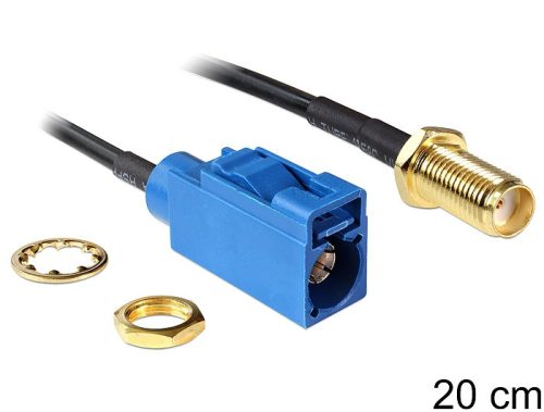 A Delock antennakábel alkalmas a rádiófrekvenciás technológia komponenseinek csatlakoztatására. Műszaki adatok Csatlakozó: 1 x FAKRA C hüvely > 1 x SMA anya válaszfali csatlakozó FAKRA C: RAL 5005 Signal blue (jel kék) Impedancia: 50 Ohm Kábel típusa: RG-174 Kábel: koaxiális Kábel csillapítás: 1,5 dB @ 1,5 GHz / méter Kábelátmérő: kb. 2,9 mm Kábel színe: fekete Legkisebb hajlítási sugár: 10,5 mm Hosszúság (a csatlakozóval együtt) (L): kb. 20 cm Rendszerkövetelmények Egy szabad SMA vagy FAKRA C csatlakozással A csomag tartalma Antennakábel Csomag Poly bag Gyártó: Delock Szélesség cm: 10 Hosszúság cm: 16 Magasság cm: 1