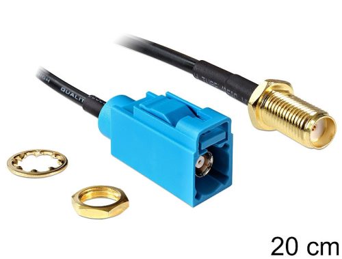 A Delock antennakábel alkalmas a rádiófrekvenciás technológia komponenseinek csatlakoztatására. Műszaki adatok Csatlakozó: 1 x FAKRA Z hüvely > 1 x SMA anya válaszfali csatlakozó FAKRA Z: RAL 5021 vízkék Impedancia: 50 Ohm Kábel típusa: RG-174 Kábel: koaxiális Kábel csillapítás: 1,5 dB @ 1,5 GHz / méter Kábelátmérő: kb. 2,9 mm Kábel színe: fekete Legkisebb hajlítási sugár: 10,5 mm Hosszúság (a csatlakozóval együtt) (L): kb. 20 cm Rendszerkövetelmények Egy szabad FAKRA Z vagy SMA csatlakozással A csomag tartalma Antennakábel Csomag Poly bag Gyártó: Delock Szélesség cm: 10 Hosszúság cm: 16 Magasság cm: 1