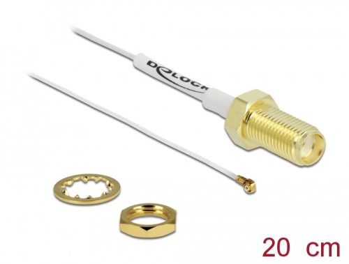 Delock Antenna kábel SMA anya válaszfali csatlakozóval apa MHF II-dugó 0.81 20 cm menethossz 10 mm