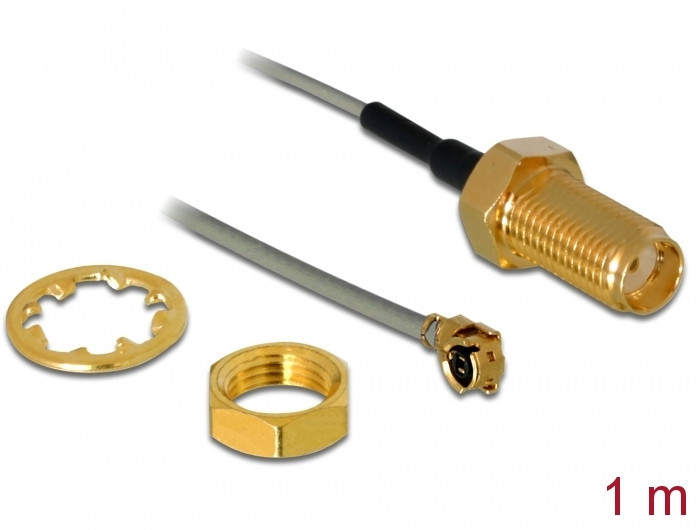 Delock Antenna kábel SMA anya válaszfali csatlakozóval apa MHF I -dugó 1.13 1 m menethossz 10 mm