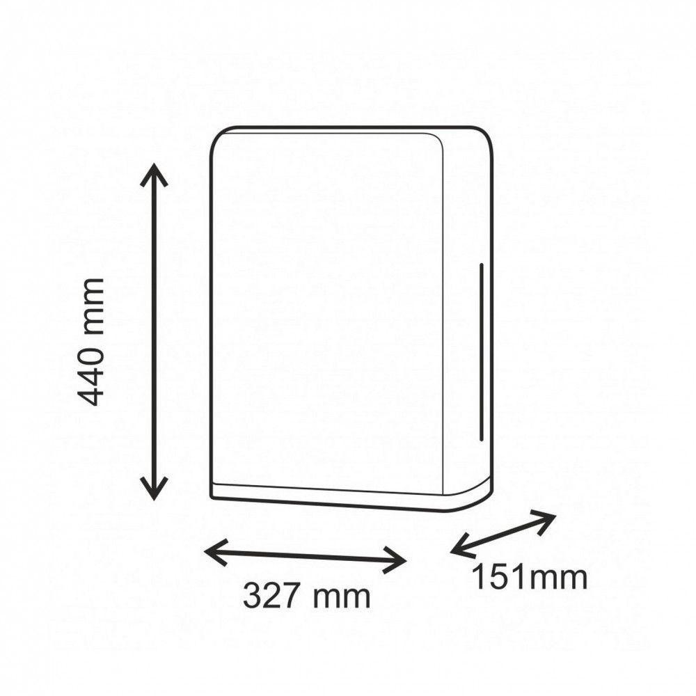 - hajtogatott kéztörlő tartó, papírtörlő adagoló- állítható, így bármilyen méretű és hajtású kéztörlővel kompatibils (V, C, Z, W)- ABS műanyag- fehér- zárható- kapacitás: 800 lap- 327 (szél) x 440 (mag) x 151 (mély) mm- Satino by Wepa