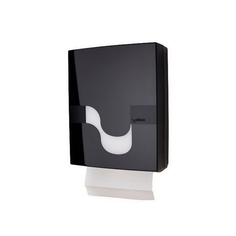 Az összes "C" és "V" hajtogatású kéztörlő papírral kompatbilis. Méretét tekintve tökéletesen megfelel bevásárlóközpontok, vendéglátóhelyek, oktatási és egészségügyi intézmények mosdóiba. Fényes fekete, letisztult megjelenésének köszönhetően tökéletesen megfelel a modern és a klasszikus mosdókba egyaránt. A nagy méretű betekintő ablaknak köszönhetően jól követhető a papír fogyása. Körülbelül három csomag hajtogatott papír kéztörlő fér el a tartóban, amely a nagyobb forgalmú helyekre is bőven elegendő. Kulccsal zárható melynek segítségével a lopás elkerülhető. A szabvány kulcs az összes Celtex megamini adagolóhoz használható.