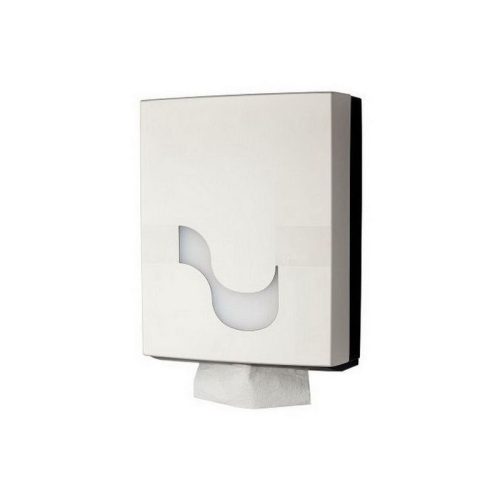 - kéztörlő papír adagoló, papírtörlő tartó- V hajtogatott kéztörlőhöz használható- ABS műanyag- fehér- ablakos- 360 (mag) x 275 (szél) x 125 (mély) mm