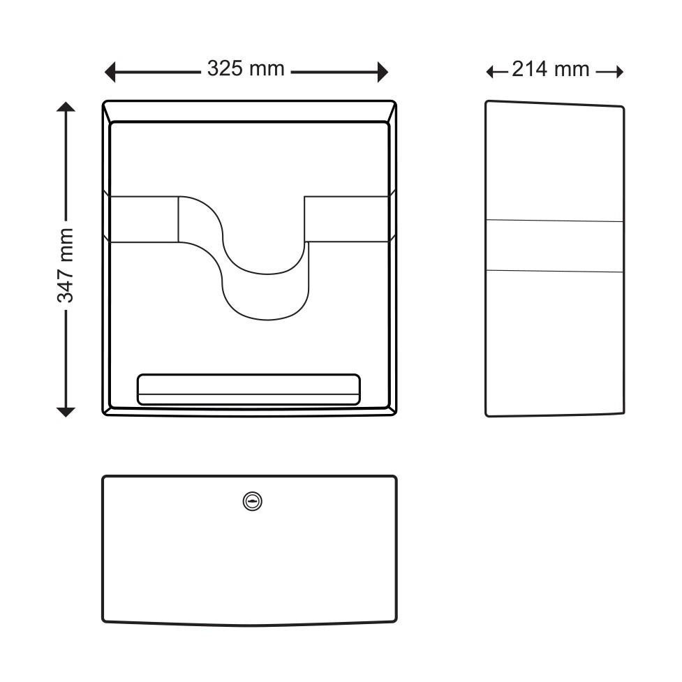 - tekercses kéztörlő adagoló, papírtörlő tartó- szenzoros- egylapos adagolás: csak a használni kívánt papír érintése szükséges ami állítható 15 és 80cm között- alacsony zajszint- állítható késletetési adagolás 0,5-5 másodperc között- opálfényű ablakkal ellátva, mely könnyen átlátható, ha újratöltésre van szükség- hozzá illeszkedő tekercses kéztörlő méretek: max átmérő 20 cm és max szélesség 20 cm- alkalmas 1, 2 illetve 3 rétegű papírokhoz is- maradék tekercs funkció,- fekete műanyag- mérete: 347(mag) x 325 (szél) x 214 (mély) mm- 4 db "D" LR20 góliát elemmel működtethető- folyamatos papír ellátás az extra tartónak köszönhetően: mielőtt elfogy a papír a tekercsről, az áthelyezhető az alsó tartóra, az új tekercs pedig a fő tartóra a videoban látható módon- súlya: 2 765gr